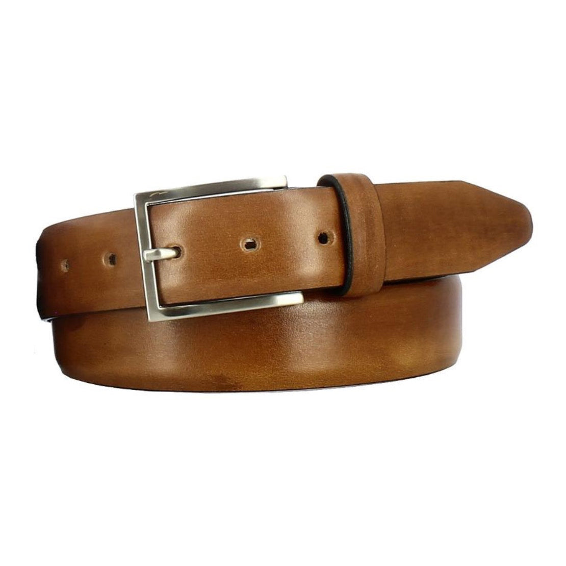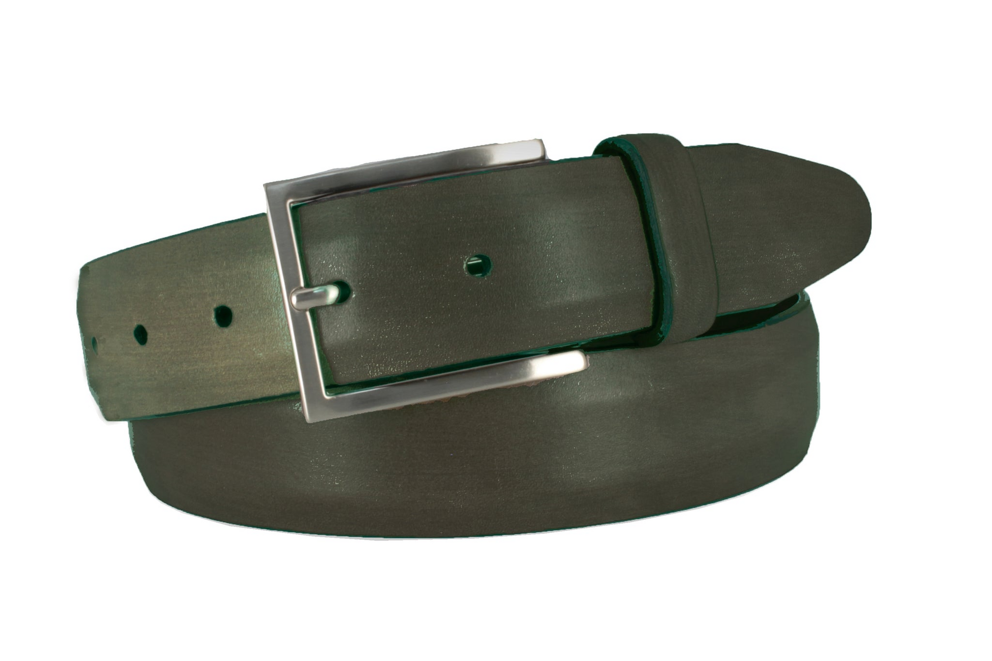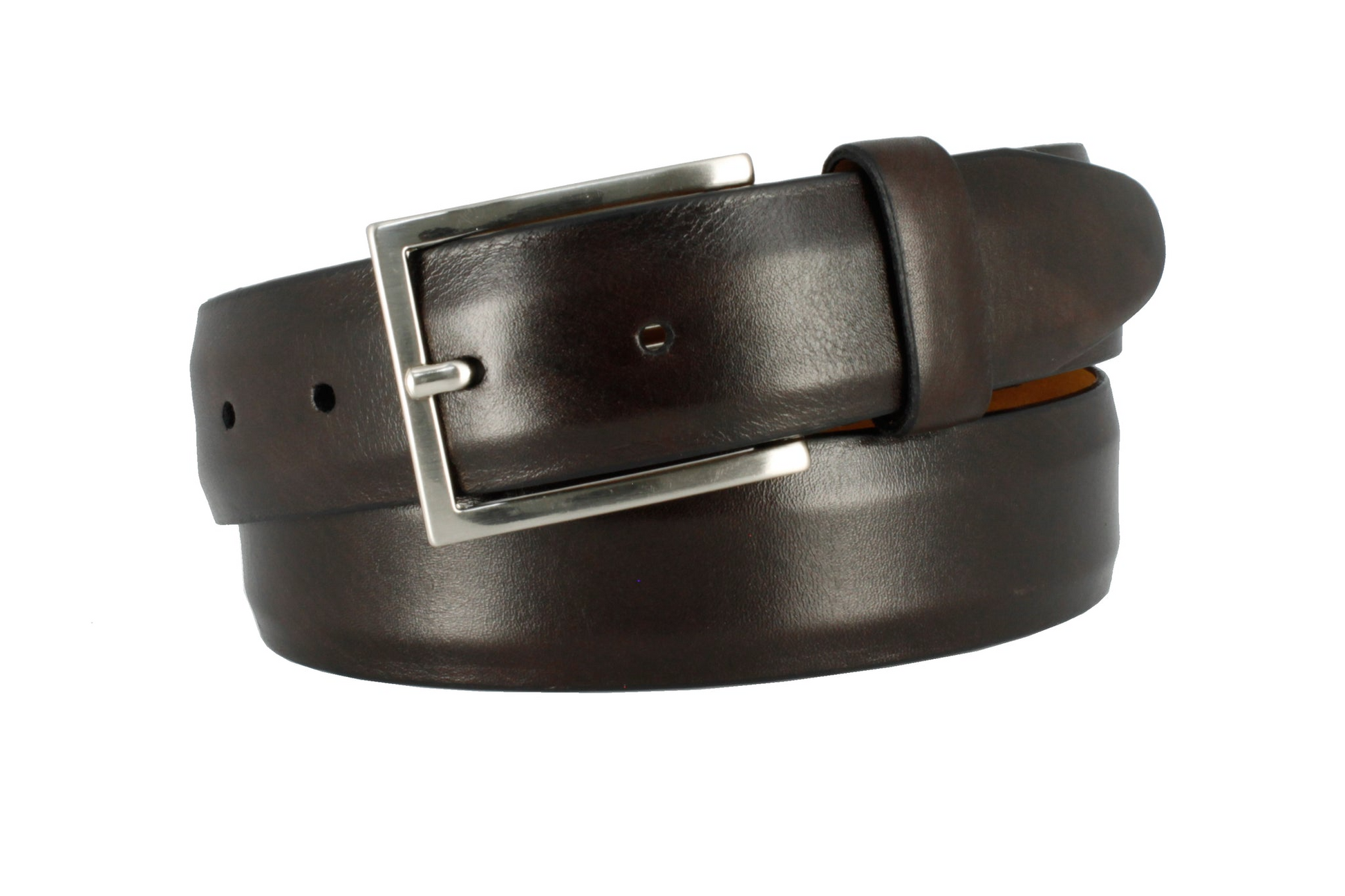 Italian calfskin leather with soft nubuck liner. The Jackson is built from a smooth polished calf skin leather, with tonal color hand antiquing. This belt is fitted with an Italian buckle, in a brushed nickel finish, with matching calfskin loop. Available in Navy Blue, Cognac, Midnight Grey, Espresso, Black, Burgandy, and Olive, sizes 30-50.